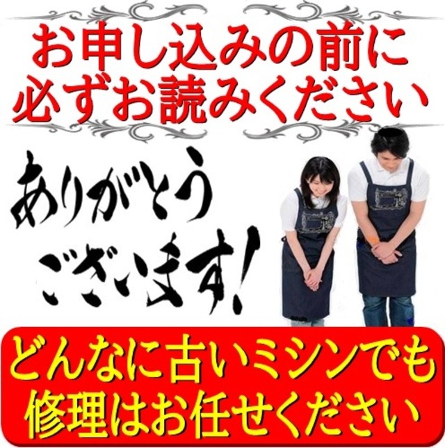 ┏★☆★☆━━━━━━━━━━━━━━━┓ あ な た の ミ シ ン の 修 理 屋 さ ん で す。 ┗━━━━━━━━━━━━━━━☆★☆★┛ 【 ミ シ ン 修 理 技 術 料 金 】 \ 調整修理 ⇒ 7,900円 ( 税込 ) です / ▼ ※注) 部品交換を伴う場合は別途申し受けます。 ┏★☆★☆━━━━━━━━━━━━━━━┓ 学校関係で10台以上の教材用ミシンは、 特別割引き料金で承ります。 ┗━━━━━━━━━━━━━━━☆★☆★┛ 【 新 潟 県 内 の 出 張 料 金 】 \ 出張料金 ⇒ 周 辺 地 域 は 無 料 で す / ▼ ┏★☆★☆━━━━━━━━━━━━━━━┓ 出 張 料 金 の 無 料 サ ー ビ ス 地 域 は \ 新 潟 市 内 の 全 域 / 新発田市・五泉市・阿賀野市・加茂市・三条市 と周辺地域は、無料サービスです。 ┗━━━━━━━━━━━━━━━☆★☆★┛ ※注) 中越地域のミシン出張修理は、 お問い合わせください。 _/_/_/_/_/_/_/_/_/_/_/_/_/_/_/ 古い学校用ミシンでも、調整修理いたします。 ご指定の場所へ修理スタッフがお伺いして、 作業時間は、台数と故障内容で異なります。 \ 完了後に試し縫いでご確認いただけます / +++★ 早くて、安くて、安心、便利です ★+++ ◎ 部品交換などが必要な場合は、お見積りを いたしますので、ご検討された上で 部品交換を行いますのでご安心ください。 ◎ オーバーホールも別途承りますので、 詳しくは修理スタッフにお尋ねください。 _/_/_/_/_/_/_/_/_/_/_/_/_/_/_/ .